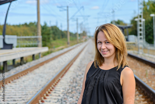 woman, female, station, travel, young, girl, traveler, person, transportation, railway, vacation, departure, beautiful, wait, trip, platform, journey, passenger, tour tourism, holiday maker, way, adventure, attractive, transport, urban, rail, summer, route, stop, style, caucasian, voyage, public, outside, watching, train, copy space, copy space, horizontal