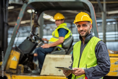 forklift, warehouse, man, person, male, logistic, driver, vehicle, job, smiling, storage, inside, employee, operator, work, shipping, men at work, industrial, working, storehouse, helmet, transportation, truck, machine, pallet, distribution, loading, cargo, factory, indoor, machinery, shelf, store, transport, manufacturing, stock, professional, lift, vest, good, delivery, driving, load, operating, dispatch, standing, labor, old