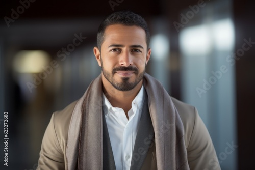 Portrait of handsome businessman with handkerchief standing in corridor at office
