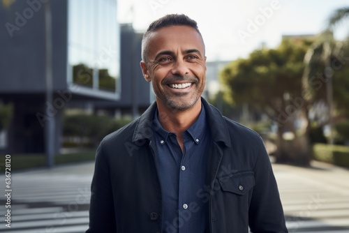 Portrait of handsome mature African man smiling and looking at camera outdoors