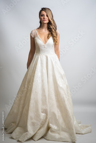 coiffure, clothes, charming, isolated, blond, cute, engagement, clothing, standing, romance, romantic, brunette, celebration, style, hair, 1, healthy, elegance, make-up, long, portrait, wedding, bride, female, white, beautiful, fashion, woman, caucasian, face, young, dress, pretty, looking, happy, attractive, smile, posing, adult, person, model, beauty, studio, veil, gown, people, background, girl, bridal