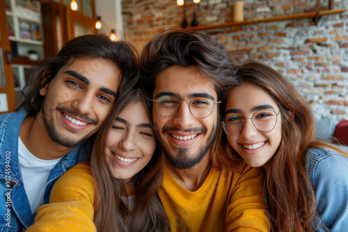 Portrait of la group of young people of Indian ethnicity with smiling faces