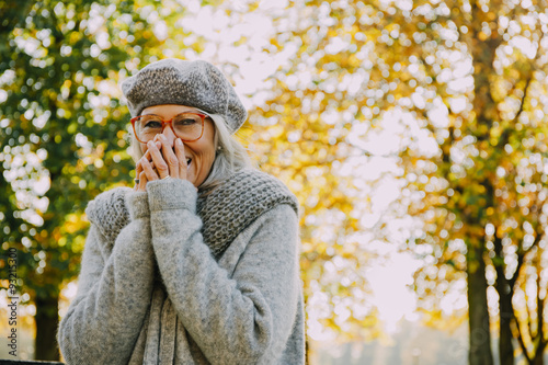 Portrait of laughing woman in an autumnal park