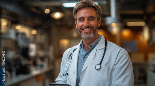 doctor, tablet, desk, mature, happy, holding, digital, portrait, technology, office, man, computer, health, hospital, smile, communication, medicine, person, laboratory, stethoscope, health care, physician, service, clinic, connection, diagnostic, surgeon, screen, profession, coat, workplace, optimistic, confidence, exam, expert, expertise, paediatrician, professional, browsing, assistant, caucasian, general, male, medicals, medicare, practitioner, senior, specialist, standing
