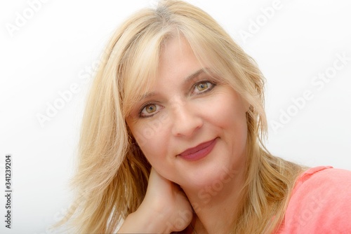 50s, portrait, blond, pleasant, aged, natural, fun, attractive, middle-aged, happiness, adult, middle, relaxed, casual attire, 40s, caucasian, smile, modern, lifestyle, woman, interior, beauty, home, house, mature, cheerful, beautiful, indoor, comfort, pretty, long hair, happy