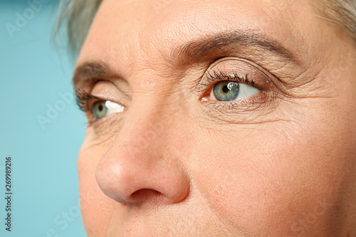 adult, attractive, background, beautiful, beauty, blue, care, caucasian, closeup, collagen, colours, cosmetology, dermatology, eye, face, female, healthy, lady, lifestyle, lifting, mature, maturity, middle-aged, model, people, person, portrait, pretty, skin, treatment, view, woman, wrinkle