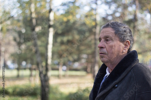 aging process, autumn, casual clothes, confidence, contemplation, copy space, daydreaming, facial expression, healthy lifestyle, horizontal, avocation, lifestyle, loneliness, looking away, male, mature adult, man, nature, one man only, one person, outdoors, people, photo, portrait, problem, public park, relaxation, retirement, serbia, serene people, serious, sitting, solitude, uncertainty, worried, wrinkled