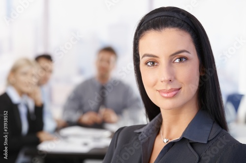 businesswoman, portrait, smiling, team, attractive, background, people, businessperson, group, office, meeting, working, suit, confident, face, professional, corporate, woman, men at work, caucasian, business, co-worker, young, european, looking, associate, partnership, good, mood, satisfied, person, jacket, white, beauty, crew, chatting, shirt, staff, formal, colleague, photo, work, camera, pretty, 1, eye, contact, only, partner, beautiful
