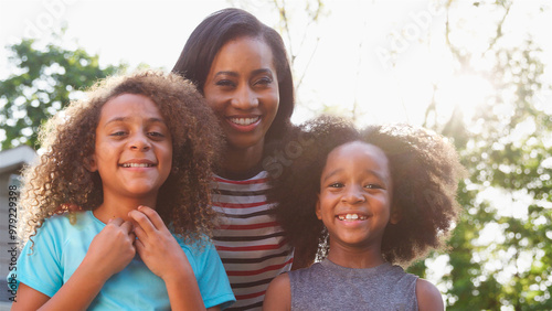 Portrait Of Smiling Mother And Children On Driveway At Home