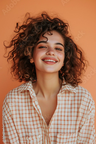 woman, beauty, smiling, hair, smile, face, teenage, brunette, people, person, teenage, model, 1, looking, children, curly, happiness, fun, fashion, lady, brown, eye, black, hispanic, studio