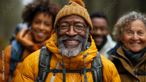Portrait of smiling senior african american man with backpack looking at camera outdoors
