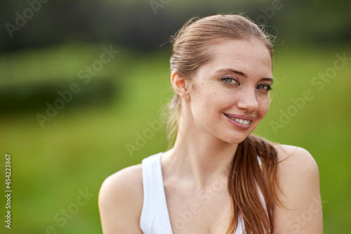 young, happy, smiling, people, smile, attractive, caucasian, happiness, woman, white, woman, female, face, portrait, adult, cheerful, elegant, fun, summer, day, outdoors, standing, friendly, european, stylish, fitness, fit, park, slim, sporty, graceful, garden, outside, 1, slender, sport, 20s, 29, public park, city garden