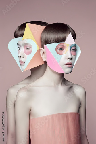 children, art, fashion, background, portrait, style, stylish, face, beauty, colourful, make-up, studio, closeup, colours, beautiful, attractive, look, person, trendy, fashionable, coiffure, 1, people, hair, clothes, expression, emotional, modern, collage, geometrical, shape, weird, vogue, cardboard, creative, idea, original, illustration, generative, ai