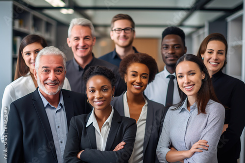 Portrait of successful creative business team looking at camera and smiling. Diverse business people standing together at startup.