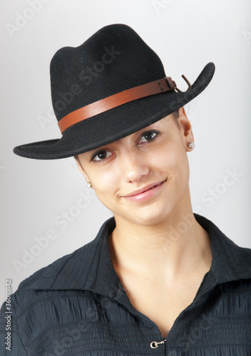 country, cowboy, girl, hat, attractive, beautiful, belt, black, brown, earring, ear, eye, female, happiness, happy, head, human, leather, mouth, neck, nose, optimism, people, portrait, shirt, 16, skin, smile, smooth, teenage, teenage, western, woman, young