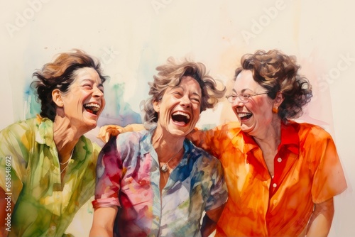 Portrait of three happy women laughing and having fun in a party. Created with Generative AI tools