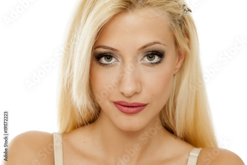 positive, woman, face, beauty, beautiful, make-up, portrait, model, girl, skin, female, sexy, lip, glamour, fashion, hair, care, closeup, up, young, honed, pretty, natural, eye, studio, sensual, white, background, caucasian, attractive, make up, blond