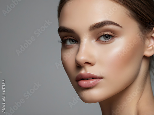 portrait, young, beautiful, woman, honed, smooth, skin, natural, beauty, cosmetology, cosmetic, skincare, plastic surgery, face, hair, fashion, make-up, model, eye, lip, brunette, glamour, people, closeup, person, smile, studio, care, skincare, make-up, lady, fresh, clean