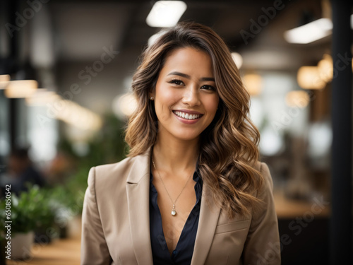 Portrait of young smiling Successful businesswoman, Happy business woman standing in creative office. AI Generative