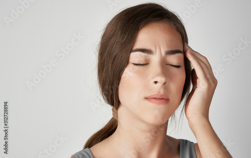 people, girl, health, female, young, head, portrait, stress, sick, pain, depression, ill, cephalalgia, stressed, migraine, white, beautiful, person, woman, face, adult, disease, problem, sleepy, worry, depressed, suffer, modern, lady, caucasian, sad, emotional, sorrowful, trouble, ache, business, lifestyle, pretty, model, expression, eye, hand, temple, bad, negative, serious, despair, background, beauty, up