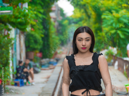 woman, young, beautiful, beauty, park, summer, portrait, outdoors, happy, smile, hair, fashion, dress, people, nature, cute, person, brunette, 1, model, face, smiling, green, human, hanoi, vietnam