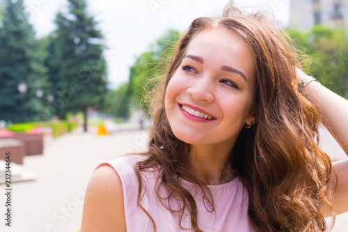 street, city, summer, cute, joy, casual attire, lady, person, beauty, people, adult, lifestyle, hair, face, 1, caucasian, portrait, attractive, girl, woman, smile, pretty, young, beautiful, happy, female
