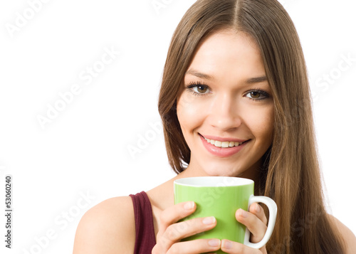 Portrait of young woman with a cup of tea looking at camera