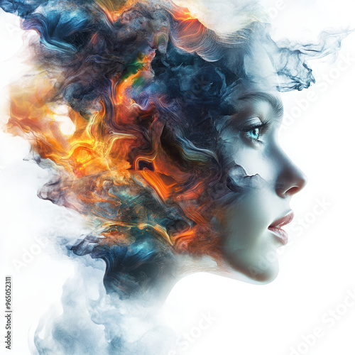 portrait profile woman fire smoke art colors creativity ethereal fantasy beauty digital art surrealism abstract artistic expression vibrant colors ethereal woman