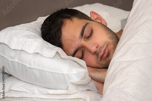 portrait young man sleeping in bed