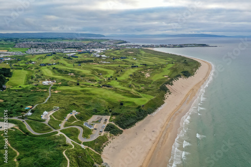 landscape, sky, sea, river, water, beach, nature, road, coast, summer, ocean, view, green, grass, blue, bay, travel, hill, sand, beautiful, coastline, panorama, mountain, cloud, field, northern ireland, golf, ireland, british, golfing, wave, atlantic, aerial, drone, coastline