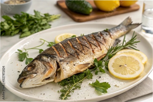 portuguese, grilled, seabass, fish, seafood, meal, cookery, lunch, dinner, food, plate, lemon, fried, trout, healthy, epicure, sea, fresh, vegetable, eatery, dish, closeup