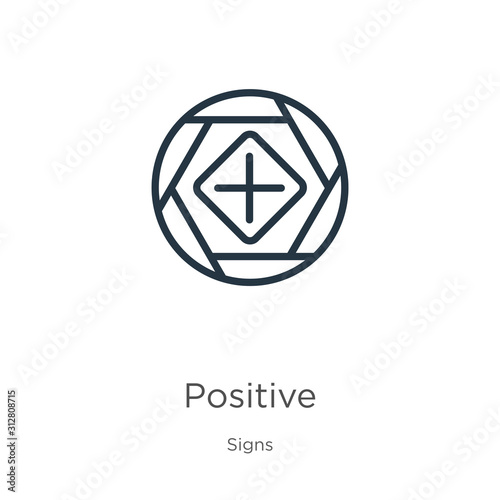 Positive icon. Thin linear positive outline icon isolated on white background from signs collection. Line vector sign, symbol for web and mobile