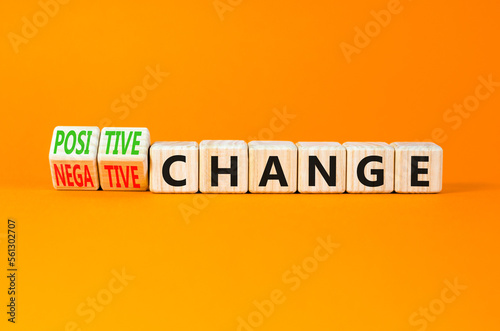 Positive or negative change symbol. Concept word Positive change Negative change on wooden cubes. Beautiful orange background. Business positive negative change concept. Copy space