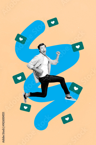 7, abstract, advertisement, app, art, blog, web log, chatting, click, collage, comment, communication, composite, contemporary, creative, design, feedback, follow, graphic, nubes, illustration, cyberspace, like, love, man, media, message, metaphor, montage, network, notification, online, pin-up, pop, popular, post, reaction, run, share, shopping, text message, social, pledging, trend, virtual, web, young