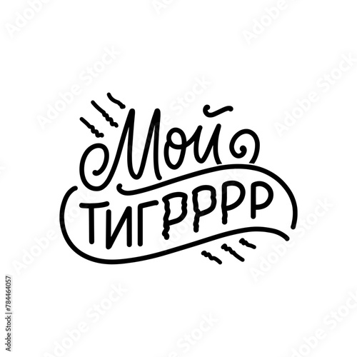 Poster on russian language with quote - My Tiger. Cyrillic lettering. Motivational quote for print design