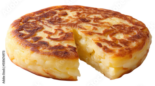 potato, cake, food, snack, baked, gold, crispy, slice, isolated, transparent, background, round, delicious, closeup, cooked, homemade, meal, vegetarian, tasty, crust, brown, soft, fresh, texture, cut, piece, portion