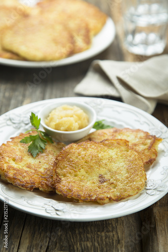 potato, homemade, battercake, traditional, dish, food, fried, meal, vegetarian, gold, delicious, tasty, vegetable, epicure, plate, cooking, cookery, prepared, background, german, fritter, brown, dark, grated, cream, sauce, closeup, white, nourishment, snack, dinner, lunch, breakfast, top, cooked, garnish, natural, light, potato, wood, cake, wooden, sugar, apple