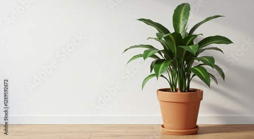 Potted peace lily plant with lush green leaves creating a fresh and inviting atmosphere in a modern interior space