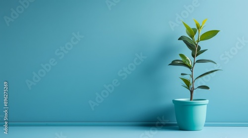 Potted plant against blue background, minimalistic and modern decor concept