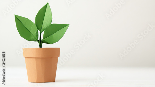 Potted plant made entirely of folded paper capturing a clean, orderly space concept. Great for decor themes suggesting creativity, minimalism, and eco-friendly lifestyles.