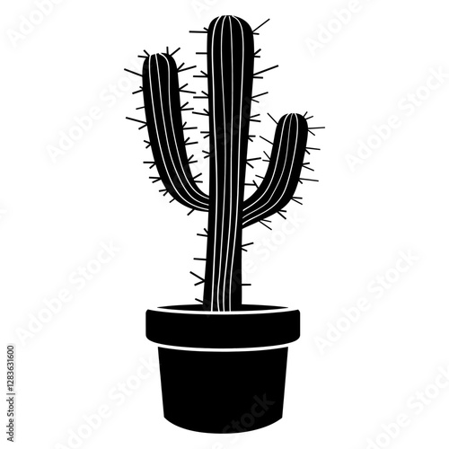 black-and-white, desert plant, illustration, potted plants, transparent, monochrome, silhouette, isolated, minimal, cactus, desert, potted, simple, vector, black, flats, plant, white, icon