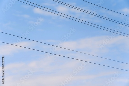 electric, wire, cable, sky, cloud, powerline, blue, electricity, outdoors, voltage, nature, air, current, cloudscape, infrastructure, minimal, structure, background, transmission, energy, utility, view, pattern, daylight, wire, clear, line, perspective, abstract, environment, bright, serene, landscape, summer, skyward, natural, horizon, skyline, open, atmosphere, sunny, light, contrast, weather, scene, cable