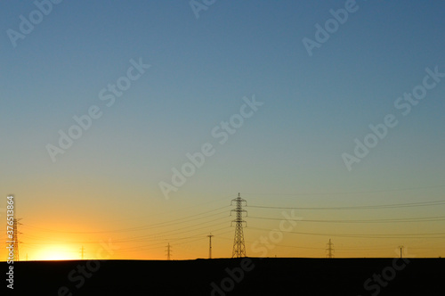 power lines at sunset