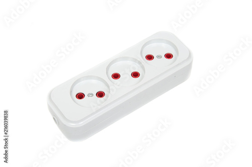 Power strip with electrical sockets standard, on a white background
