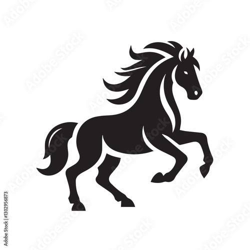 horse, silhouette, black, animal, graphic, vector, logotype, branding, design, illustration, powerful, strong, freedom, wild, nature, equine, modern, minimalist, contemporary, art, black-and-white, simple, abstract, fast horse, mare, emblem, symbol, icon, digital artwork, design element, background, template, poster, flier, editable, royalty free, creative, monochrome
