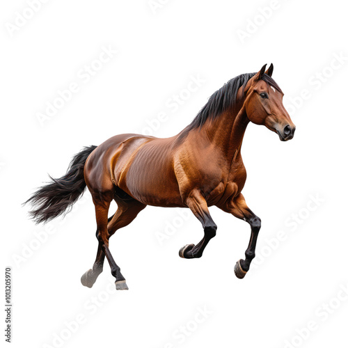 Powerful Brown Horse Galloping Isolated on a Transparent Background