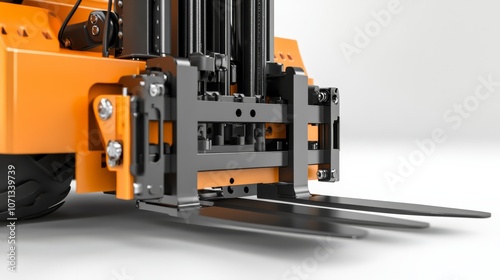 forklift, clamp, attachment, machinery, equipment, industrial, logistic, warehouse, transport, cargo, lifting, heavy duty, powerful, closeup, detail, metal, steel, orange, black, technology, efficiency, productivity, operation, engineering, construction, manufacturing, industry, business, commerce, delivery, shipping, handling, robust, hard-wearing, strong, accurateness, precision, mechanism, component