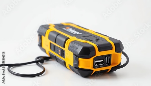 jump, starter, portable, power, bank, usb, charger, compact, robust, hard-wearing, yellow, black, technology, modern, device, contraption, automotive, emergency, equipment, tool, product, design, industrial, functional, practical, accurateness, efficient, safe, secure, strong, powerful, convenient, versatile, electrical, energy, battery, cord, port, accessory, vehicle, retail, wholesale