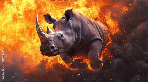 rhino, powerful, power, breaking, wall, fire, metallic, horn, animal, wildlife, strength, dynamic, action, danger, explosion, nature, fierce, epic, scene, motion, dramatic, background, intensity, wild, creature, surreal, vibrant, fantasy, visual, impact, energy, blazing, heat, adventure, environment, stunning, image, artistry, surrealism, illustration, artistic, unique, phenomena, captivating, striking, bold