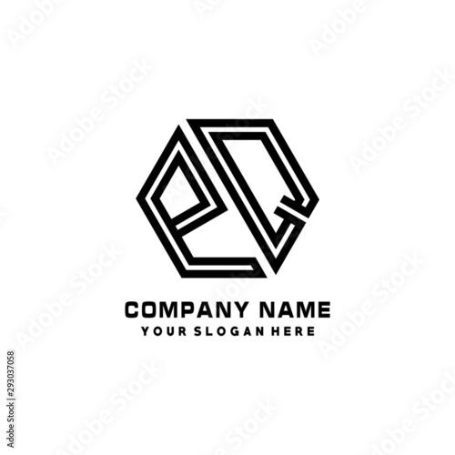 PQ initial letters, hexagon logo minimalist art lines, black color